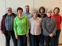 Albert Braun, Vera Pfeifer, Dirk Hamel, Anne Scharf, Walburga Kandler, Heidi Miltenberger und Margret Degenhardt (Protokallantin der Versammlung)