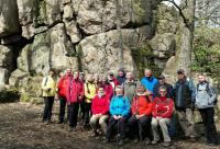 Die Tour der beiden Wanderführerinnen des OWK Auerbach startete mit einer kleinen Stadtführung durch die Bensheimer Innenstadt mit ihren Fachwerkhäusern, österlich geschmückten Brunnen und der „Fraa vun Bensem“. Durch den Stadtpark ging es über den Kirchberg und auf dem Alemannenweg Richtung Felsenmeer. Nach einem Start bei Regen kam immer wieder auch einmal die Sonne heraus und Gäste wie einheimische Wandersleute freuten sich über weite Blicke nach Schönberg oder zum Auerbacher Schloss, über blühende Bäume und Frühlingsblumen. An der Wegkreuzung „Toter Mann“ gab Anne Scharf die Sage zu diesem Ort zum Besten, nach der ein Elmshäuser Mann mit seiner Frau so sehr in Streit geraten war, dass die Frau ihn mit dem Beil erschlug. Da der „Tote Mann“ nun aber auf der Grenze zwischen der Grafschaft Erbach-Schönberg und der Landgrafschaft Hessen lag, wusste niemand so recht, wer für die Verurteilung der Mörderin zuständig war. Sie konnte fliehen und soll heute noch zur Geisterstunde jammernd und klagend auf dem dortigen Fels sitzen.