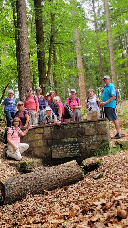 Schon die Fahrt in den Überwald macht Spaß. Wo man überall mit dem Bus hinkommt, erstaunt manche, die das nur selten nutzen. Kleine Ortschaften und wunderbare Landschaften wechseln sich ab. Die Tagestour des OWK Auerbach begann im Grasellenbacher Gassbachtal, das mit seinem Teich und der Kneippanlage zwischen saftigen Wiesen und Wald alle beeindruckte. Oben auf dem Berg angekommen, ging es parallel zum Nibelungensteig auf einem abwechslungsreichen Weg weiter, der weite Blicke in die Ferne zuließ. Nach einem kurzen Anstieg erreichte die Wandergruppe die Walburgiskapelle. Auf dem Platz davor mit Altar und Steinstufen wurden die Brote und Wasserflaschen ausgepackt. Weiter ging es zum Hildegeresbrunnen, der versteckt mitten im Wald liegt, aber noch einmal zu einem kurzen Stopp auf der dreieinhalbstündigen Wanderung einlud. Grasellenbach ist von da nicht mehr weit. Durch die offene Wiesenlandschaft ging es zum Ort, und vor der Nibelungenhalle hatte man noch Zeit, einen Kaffee zu trinken, bevor man dort in den Bus zurück nach Heppenheim stieg.